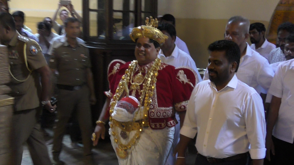 නව ජනාධිපතිවරයෙකුට සිදුකරන සාම්ප්රදායික චාරිත්ර අනුව රතු පලස මතින් කැඳවාගෙන පැමිණි අනුර කුමාර දිසානායක මහතා දළදා මාලිගාවේදී පිළිගන්නා ලද්දේ දියවඩන නිලමේ ප්රදීප් නිලංග දෑල මහතා විසිනි.