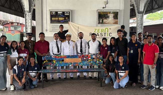 ඉවතලන ප්ලාස්ටික් බෝතල් මූඩීවලින් නිර්මාණය කරන ලද වේදිකා බංකුවක් මරදාන දුම්රිය ස්ථානයට