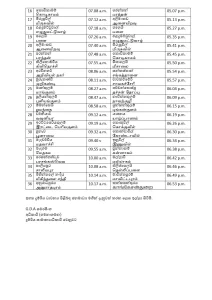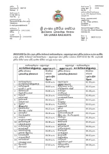 දුම්රිය ධාවනය පිළිබඳ කාල සටහන පහතින් දැක්වේ.