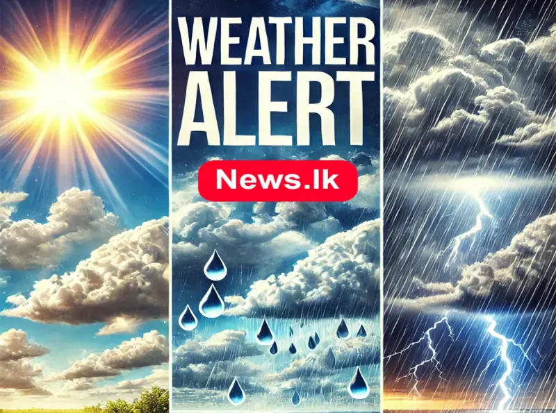 උතුරු , උතුරු-මැද, ඌව, නැගෙනහිර සහ මධ්යම පළාත්වලත් හම්බන්තොට දිස්ත්රික්කයේත් අද (12) විටින් විට වැසි හෝ ගිගුරුම් සහිත වැසි ඇතිවිය හැකි බව කාලගුණවිද්යා දෙපාර්තමේන්තුව නිවේදනය කරයි.