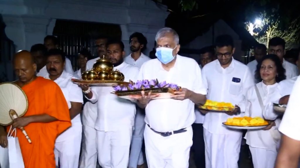 එහි පැමිණ සිටි බැතිමතුන්ද රනිල් වික්රමසිංහ හිටපු ජනාධිපතිවරයා සමඟ සුහද කතාබහක නිරත වුණා.